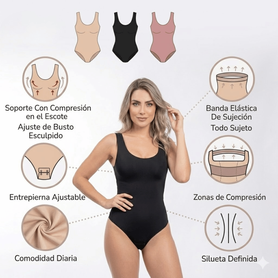 - Soporte 3D y modelado en uno: su diseño levanta el busto sin sostén y se adapta a diferentes formas, mientras la compresión en abdomen y cintura estiliza la silueta sin incomodar, logrando un efecto natural.